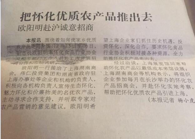 把怀化优质农产品推出去--欧阳明赴沪诚意招商