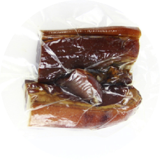选自当地农民家庭散养的乡村黑猪,体质紧凑结实。背腰平直,胸宽深,腿臀较丰满。头大小适中,面微凹,耳中等稍竖立前倾。四肢粗壮,蹄质结实。