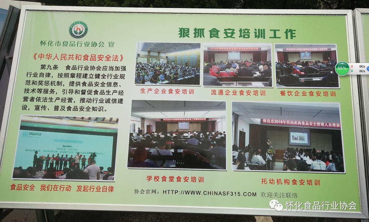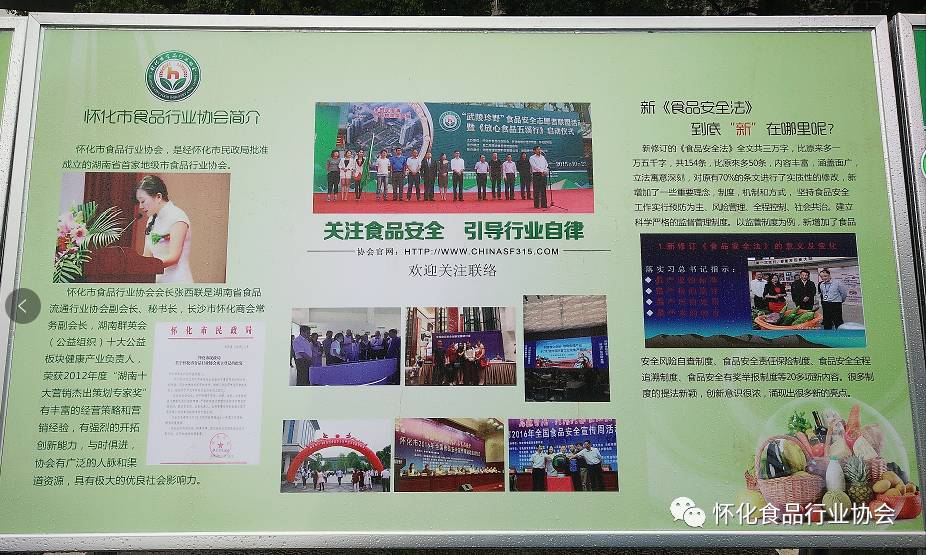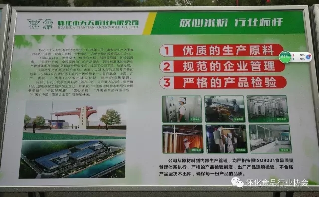 怀化市食品行业协会参加了启动仪式,并且制作两块展板向各级领导和与会嘉宾汇报协会在“关注食品安全、引导行业自律”及“狠抓食品安全培训”等方面所做的工作。协会会长单位----湖南海联食品有限责任公司、协会副会长单位-----怀化市天天粉业有限公司、协会会员单位----湖南杨家将茶油股份有限公司,也受邀参加了此次启动仪式,并制作展板展示企业风采及企业对食品安全工作的管理措施。
