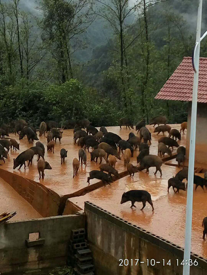 2017年10月14日,怀化市食品行业协会赵建国部长陪同长沙电视台e天生活一行三人,到沅陵五强溪、宏峰野猪生态养殖场踩点,尽管天公不作美,小雨淅淅沥沥时停时下,通往“”宏峰野猪林”的山路更是泥泞不堪、举步维艰。