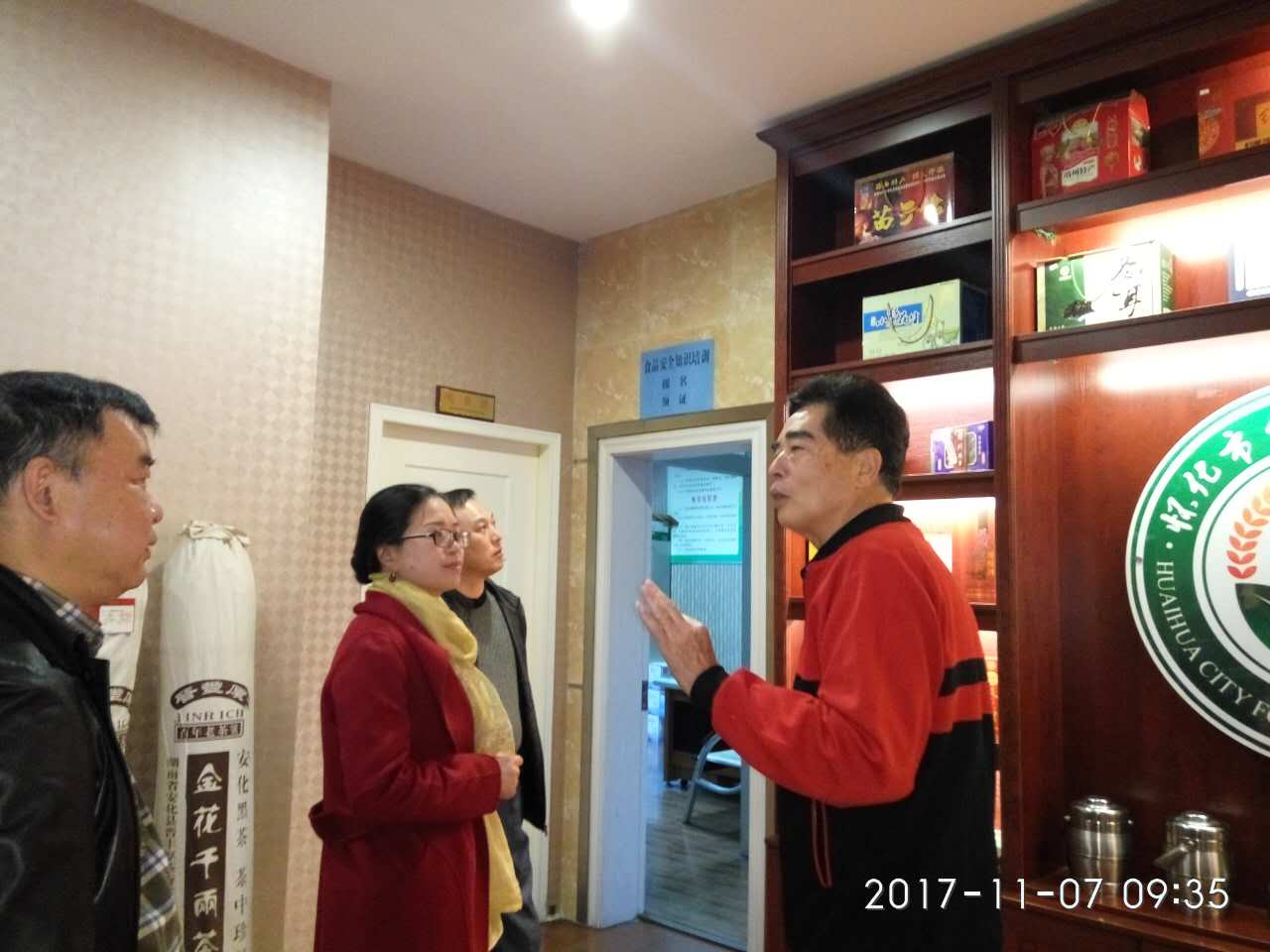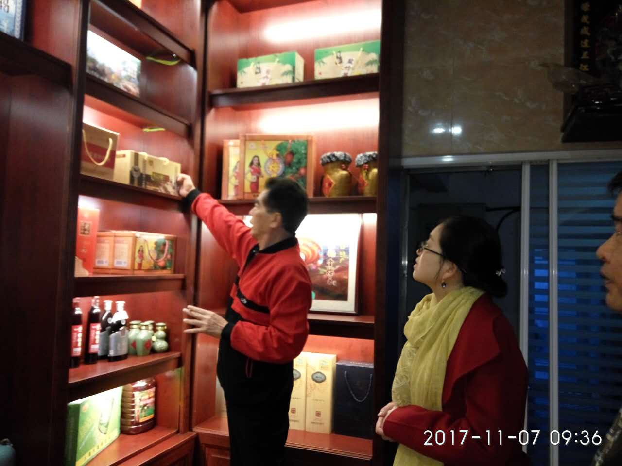 协会李湘林秘书长在向华润万家采购经理刘伟(右二)一行介绍怀化农特产品