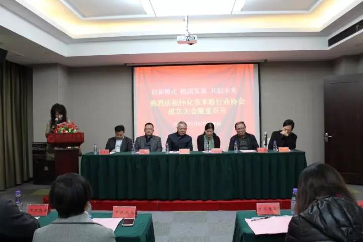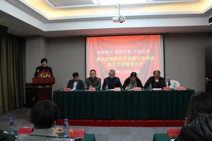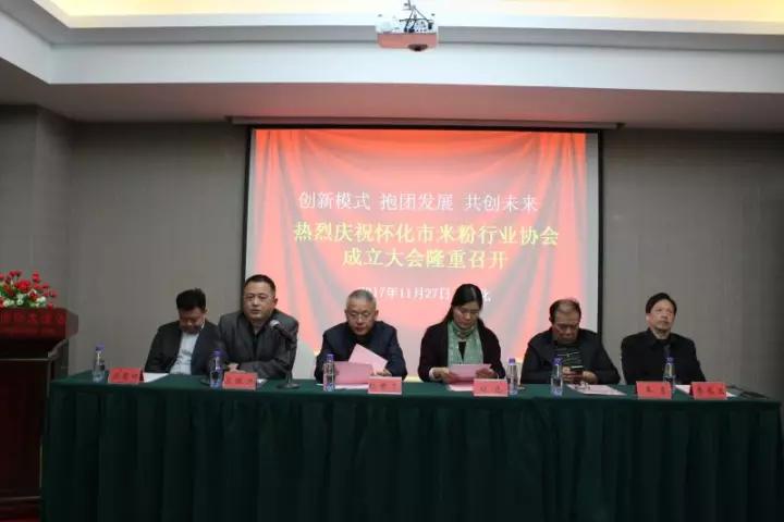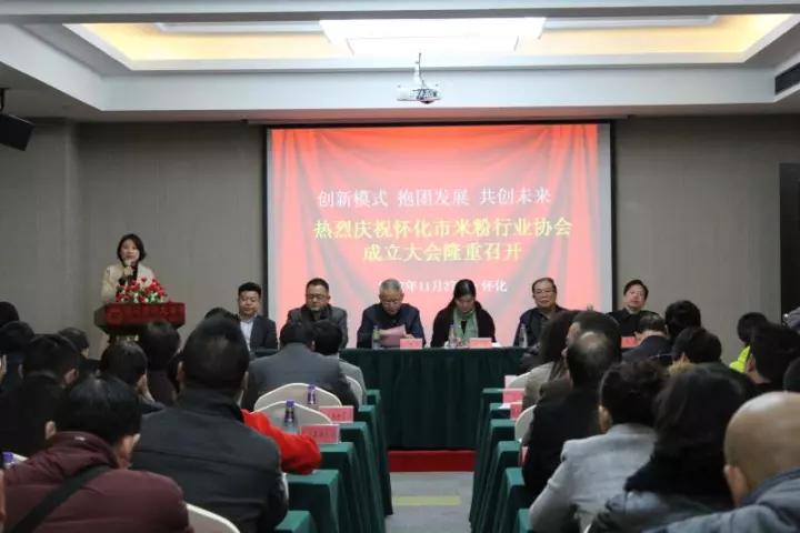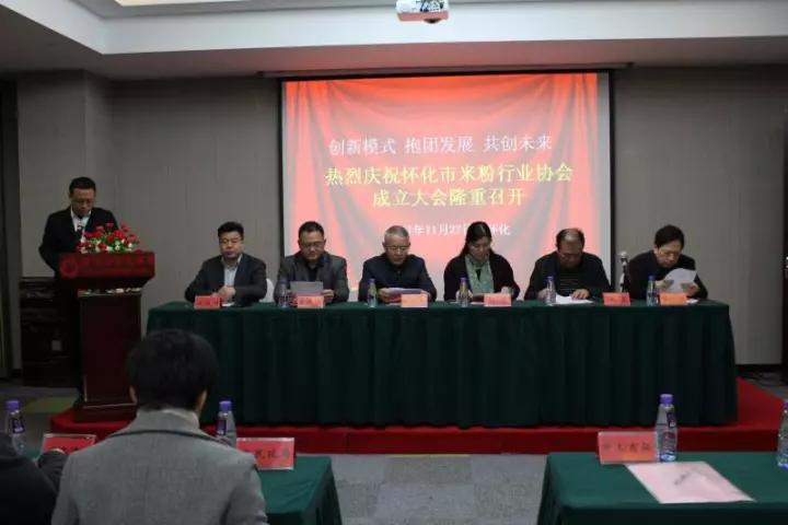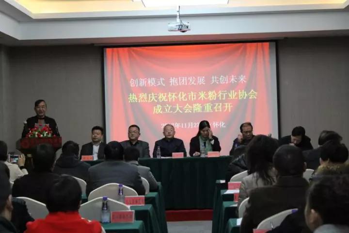 11月27日上午,历经半年的筹备,怀化市米粉行业协会成立大会于城东煌族大酒店隆重召开。应邀出席的领导有怀化市人民政府副秘书长杨世木,怀化市民政局社会组织管理局负责人李长生,怀化市食品药品监督管理局副局长应振洪,怀化市工商业联合会副主席赵忠,怀化市商务和粮食局副局长王勇,怀化市农业委员会副主任梁高动,怀化市工商行政管理局,怀化市质量技术监督局,怀化市各县市食品药品监督管理局领导及怀化市食品行业协会、怀化市饮用水商会、鹤城区女企业家协会等协会负责人、怀化市米粉生产企业代表、米粉餐饮机构代表、经销商代表、消费者代表共计80余人参加成立大会。