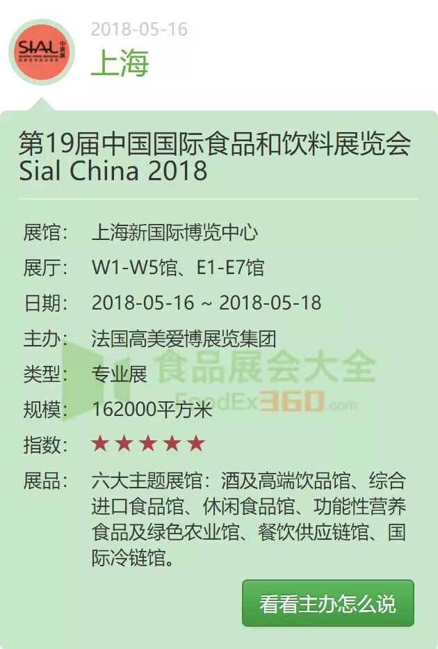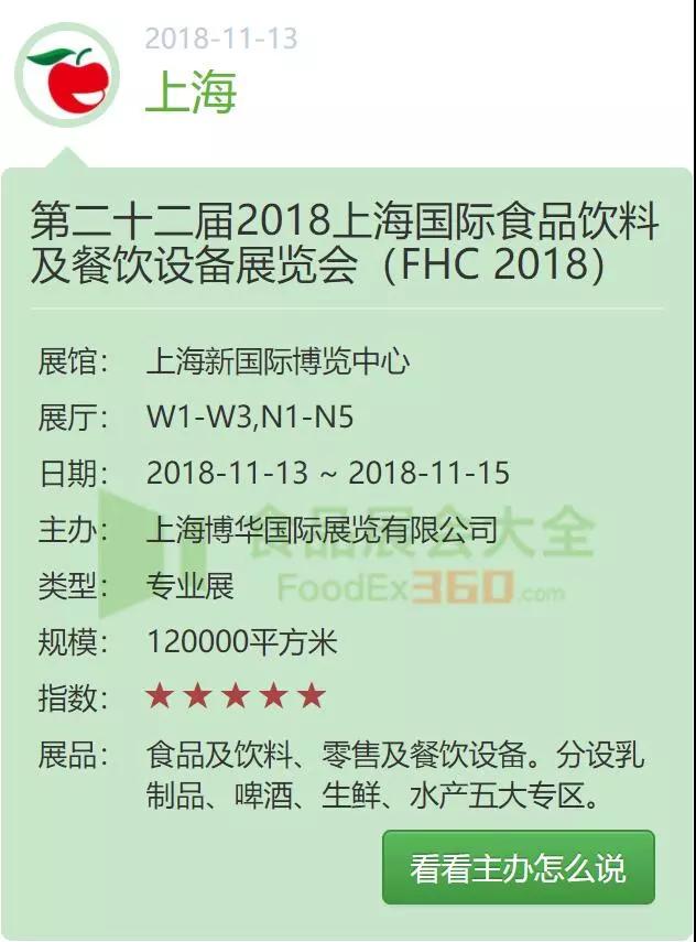 基于我们十多年以来对食品展会行业持续参与和服务的经验,方便大家对食品展会版块的情况有一个直观、全面、系统地了解,资深媒体人、展会达人——亚姐为大家精心整理出了她认为值得推荐的2018年度重点食品及相关行业展会,详细介绍了展会相关情况,并附上了参展、观展后的点评。本期内容,将通过【酷展·食品展会大全】网站(www.foodex360.com)和微信公众号:【食品展会大全】和【亚姐跑展会】等自媒体平台同步上线发布,供大家参考。欢迎收藏,欢迎转发分享,欢迎联系授权转载!