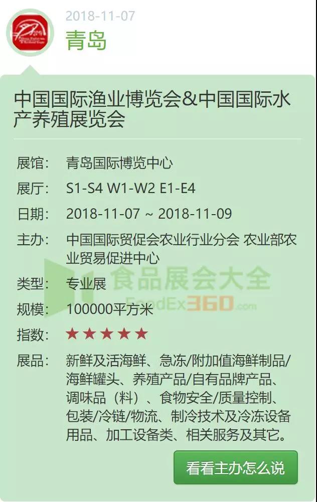 中国国际渔业博览会,由农业部支持,已经举办21年,是亚洲区域规模最大的渔业专业展览会。