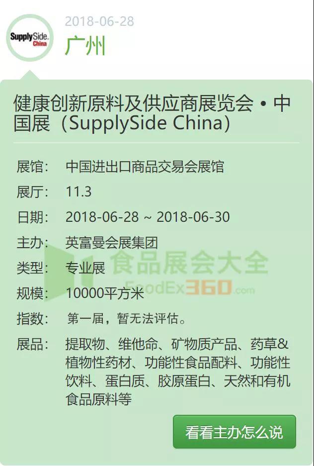 2018开年,英富曼并购UMB,跃居全球展会行业榜首;2018,SupplySide也将首次引入中国,预计有150-200家展商规模,与2016年并购的艺帆原展“IFE”“IHE”同期同地举办。