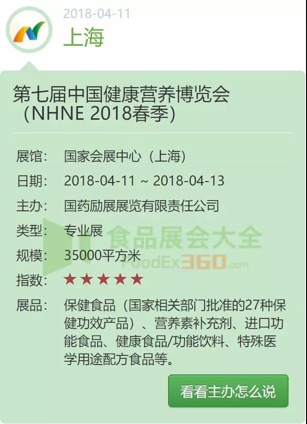 适应于国内市场的消费升级,NHNE的国际化进程在明显加快,国际高端品牌和海外展商,乃至海外展团的加入和深度参与,如2017年秋季展上新西兰、美国、澳大利亚等展团,在展会上数十个国际品牌集中亮相,一度引起市场热议。NHNE目前已经从一个国内展会的小分支,成为独立品牌展会,树立了营养健康保健产品展会的旗帜,并逐步走向国际市场。