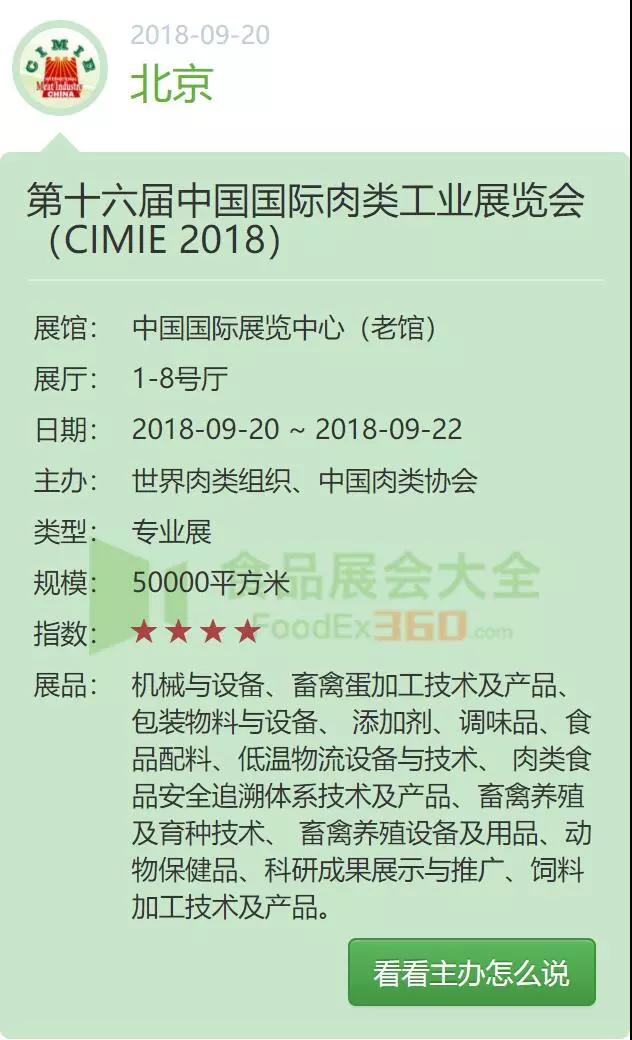 展会市场较早的以协会为主导组展的行业专业展会,集中了国内一线品牌的肉制品生产企业。