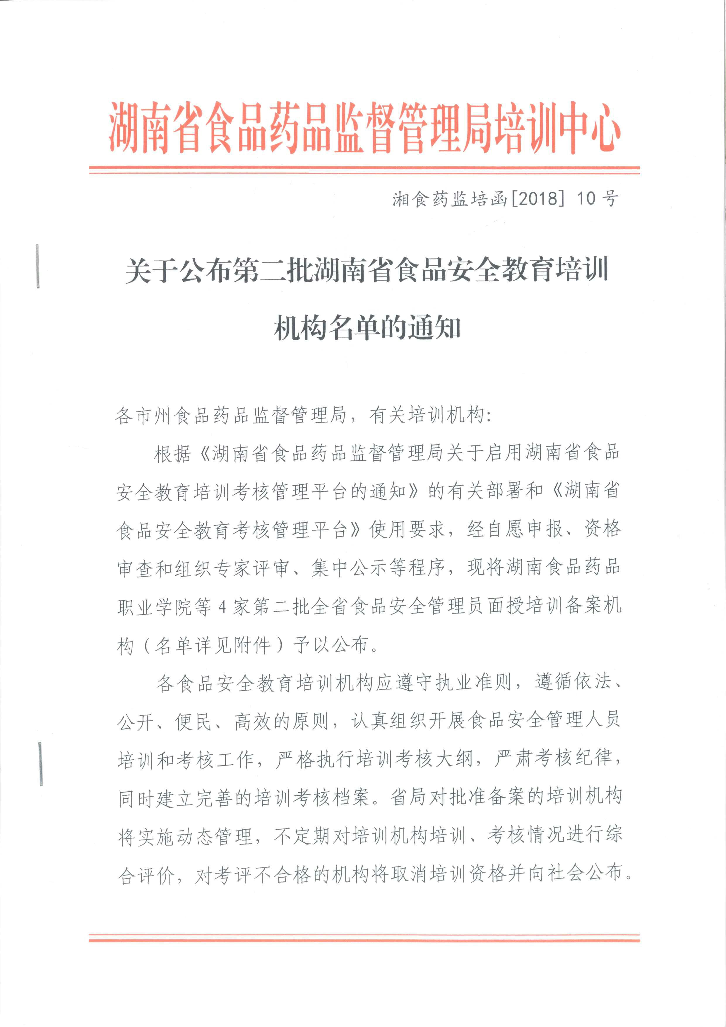 怀化市食品行业协会是第二批经湖南省食品药品监督管理局审核备案的食品安全管理员培训的面授机构,具备食品安全管理人员的培训资格