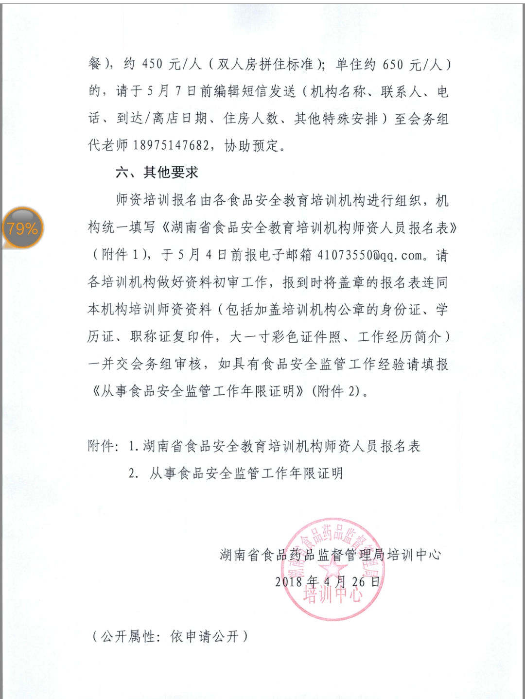 根据湖南省食品药品监督管理局湘食药监培函(2018)12号文件精神,为了更好的服务食品从业人员,协会副秘书长向娟及师资团队于2018年5月8日赴长沙学习。