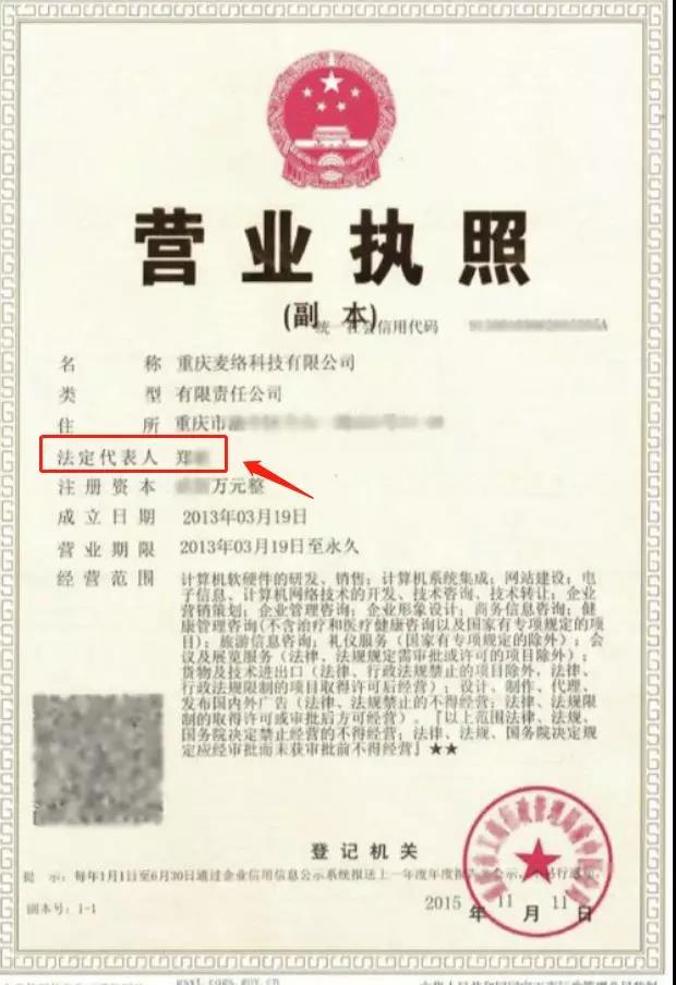 大家应该见过营业执照吧,营业执照里面,就有法定代表人一栏,法定代表人经工商局审批后就不能随意更换,比如公司的董事长,工厂的厂长。