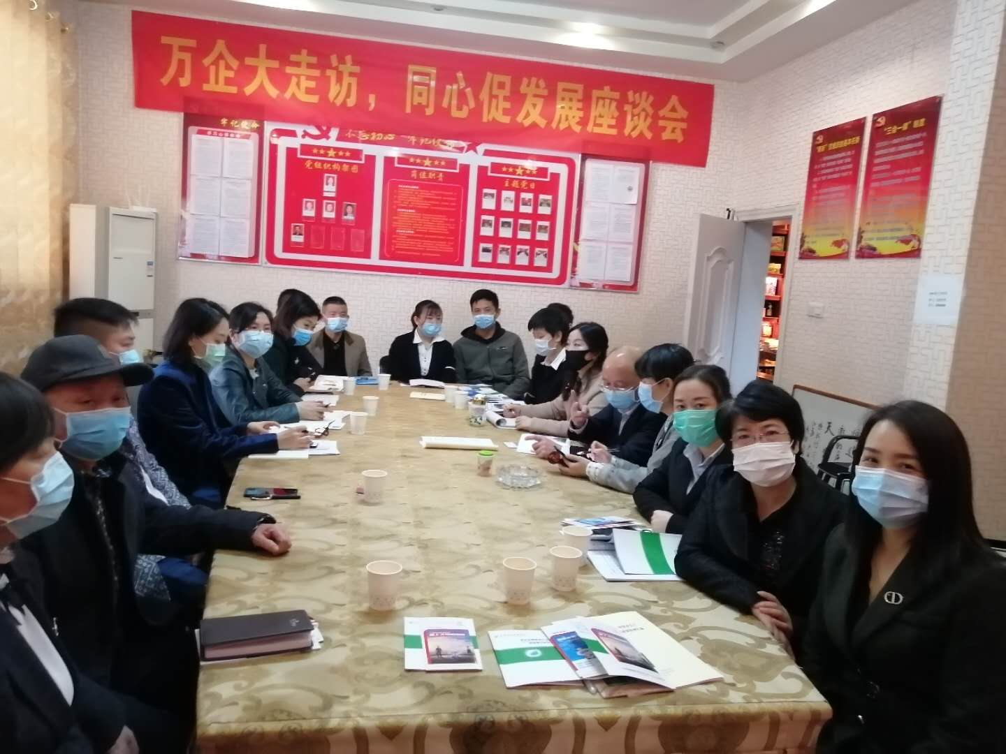 3月20日,第9工作组市委统战部杨玲调研员带领市委统战部武敏科长和市工商联陈芳部长一行,赴怀化市食品行业协会召开“万企大走访 同心促发展”座谈会,并邀请市工商银行公司金融部副总经理冉启红、普惠金融客户经理刘平平、市互联网协会廖凡会长、市邮政储蓄银行业务部负责人参加,湖南锦江泉酒业、中睿餐饮管理公司、湖南佰诺股份有限公司、芷江炎凰农业、芷江华兴油业、怀化市明友食品、麻阳米米农业科技有限公司等10来家企业代表参加座谈。