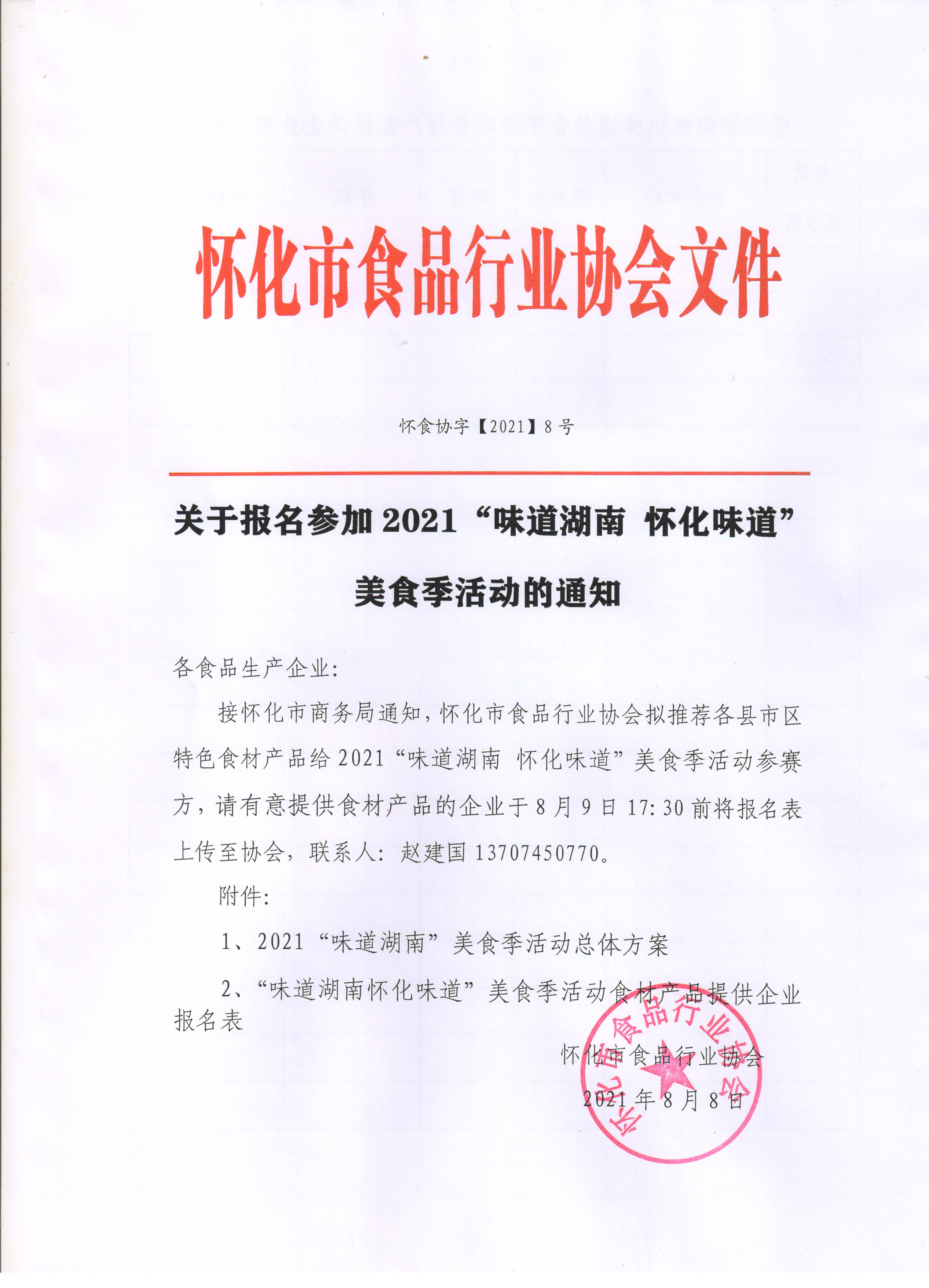 关于报名参加2021“味道湖南 怀化味道”美食季活动的通知