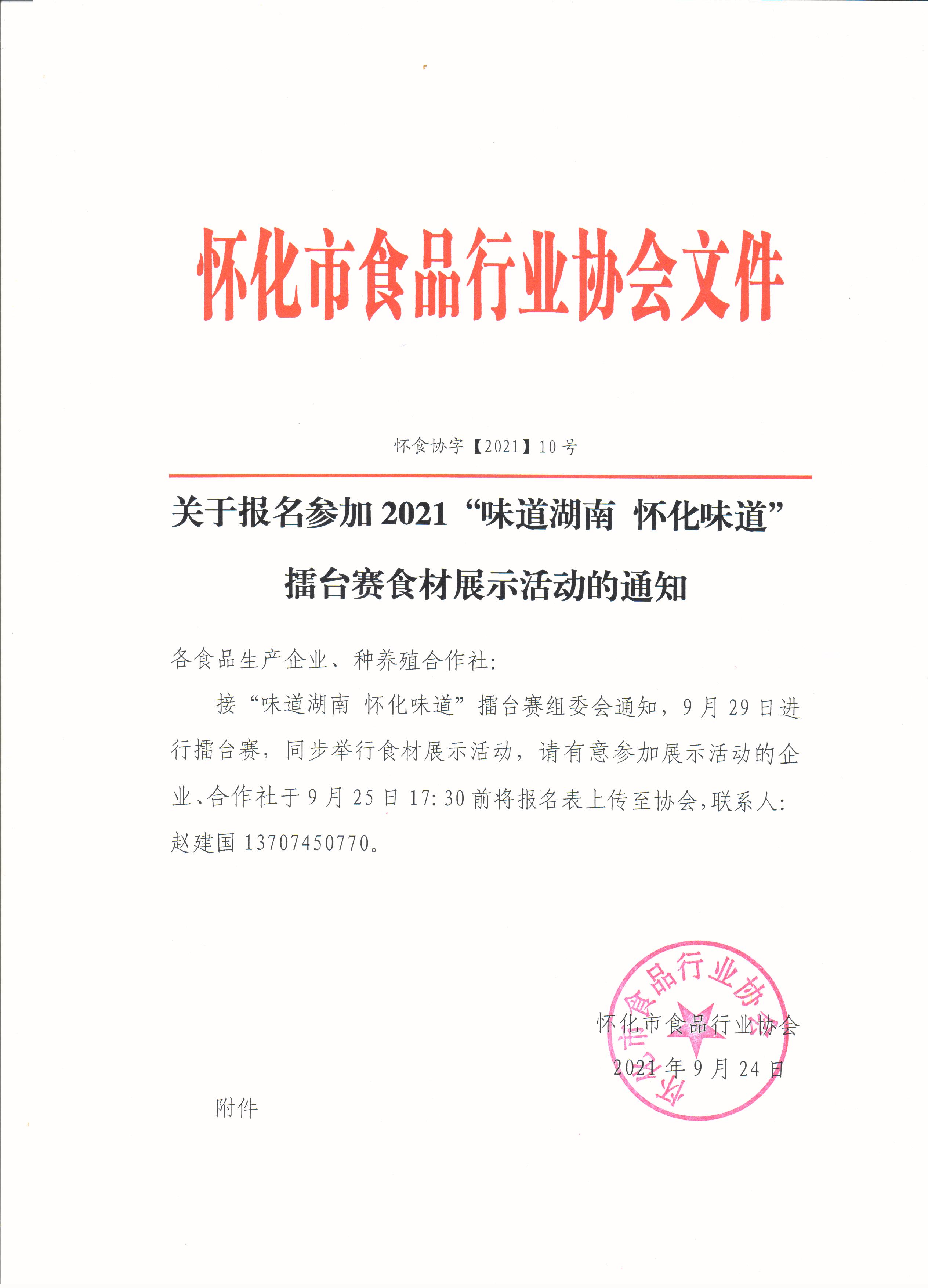 关于报名参加2021“味道湖南怀化味道”擂台赛食材展示活动通知
