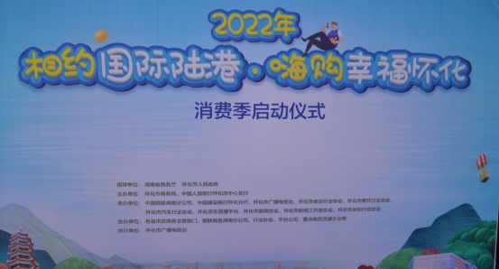 启动仪式上市人民政府常务副市长邹兴旺致辞;市商务局党组书记、局长唐成发布了2022“相约国际陆港 • 嗨购幸福怀化”消费季活动内容;中国人民银行怀化市中心支行、中国银联湖南分公司、中国建设银行怀化分行等单位负责人分别发言;最后,市委副市记、市长黎春秋宣布:2022“相约国际陆港 • 嗨购幸福怀化”消费季活动正式启动!!!