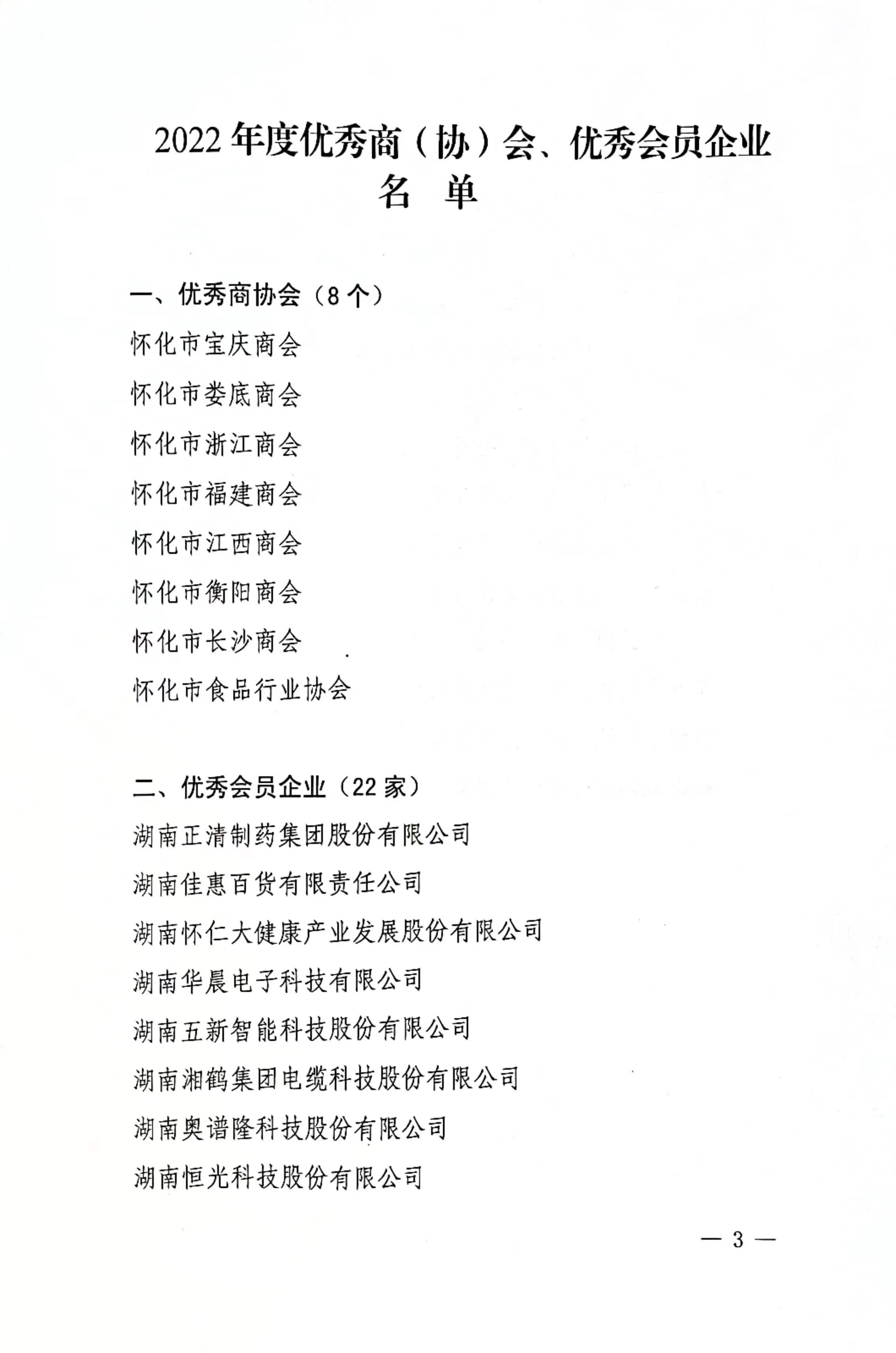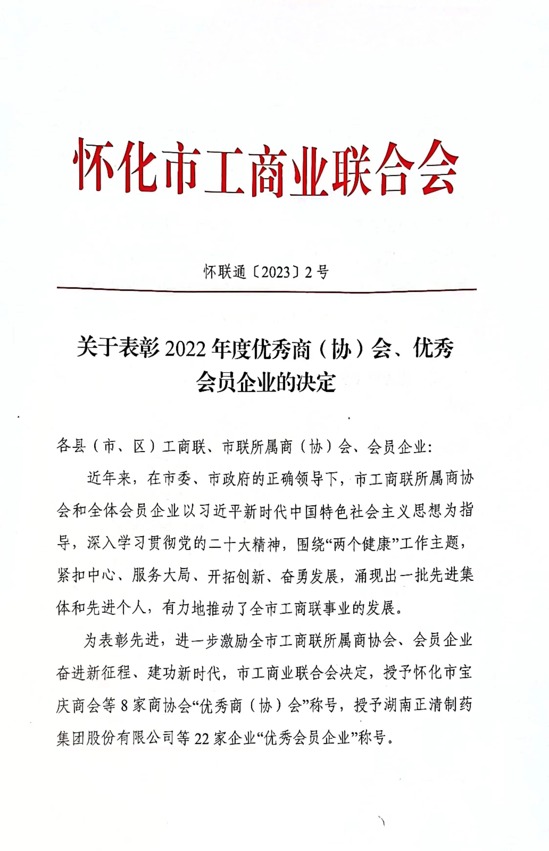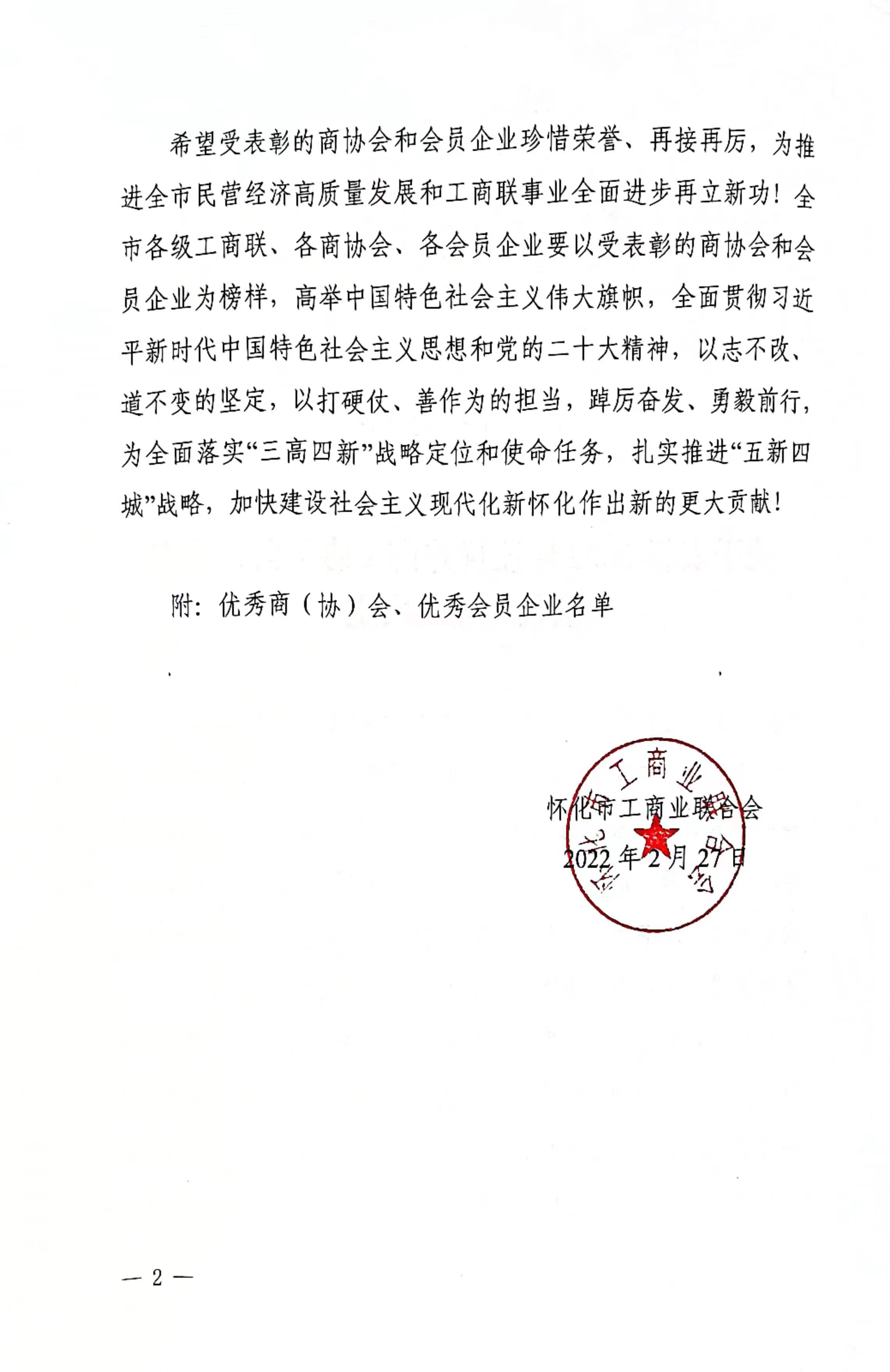怀化市食品行业协会被怀化市工商业联合会(怀化市总商会)评为二0二二年度优秀商协会