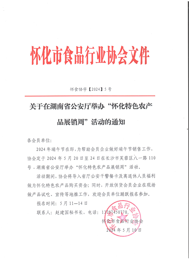 关于在湖南省公安厅举办“怀化特色农产品展销周”活动的通知