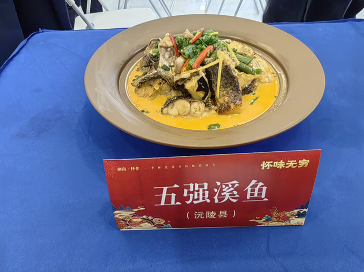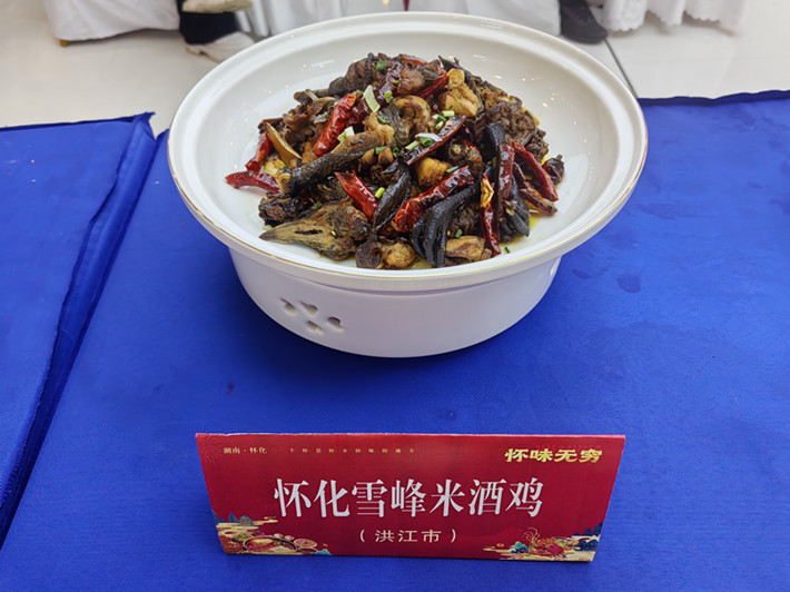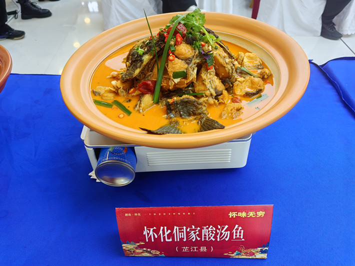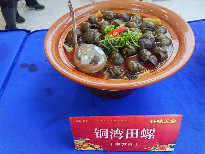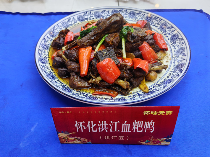 发布会上,怀化市餐饮行业协会会长向方宣布了第二届“怀味十大名菜”名单并正式对外发布,这十大名菜分别是:洪江血粑鸭、雪峰米酒鸡、侗家酸汤鱼、铜湾田螺、溆浦财头肉、茶油煮高椅干牛肉、侗乡红皮肉、靖州茯苓蛋卷、榆树湾辣椒炒肉、五强溪鱼!