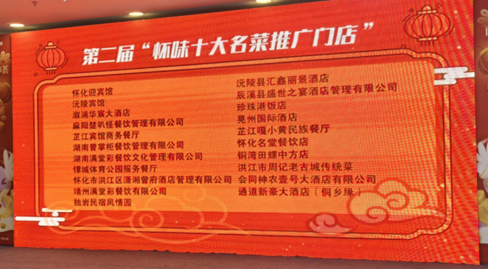 发布会上,怀化市餐饮行业协会执行会长候三林宣布了怀化迎宾馆、怀化名堂餐饮店等21家能做出当地地道美食的酒店、餐饮店为第二届“怀味十大名菜推广门店”,希望这些上榜门店为推广“怀味十大名菜”做出更大的贡献!