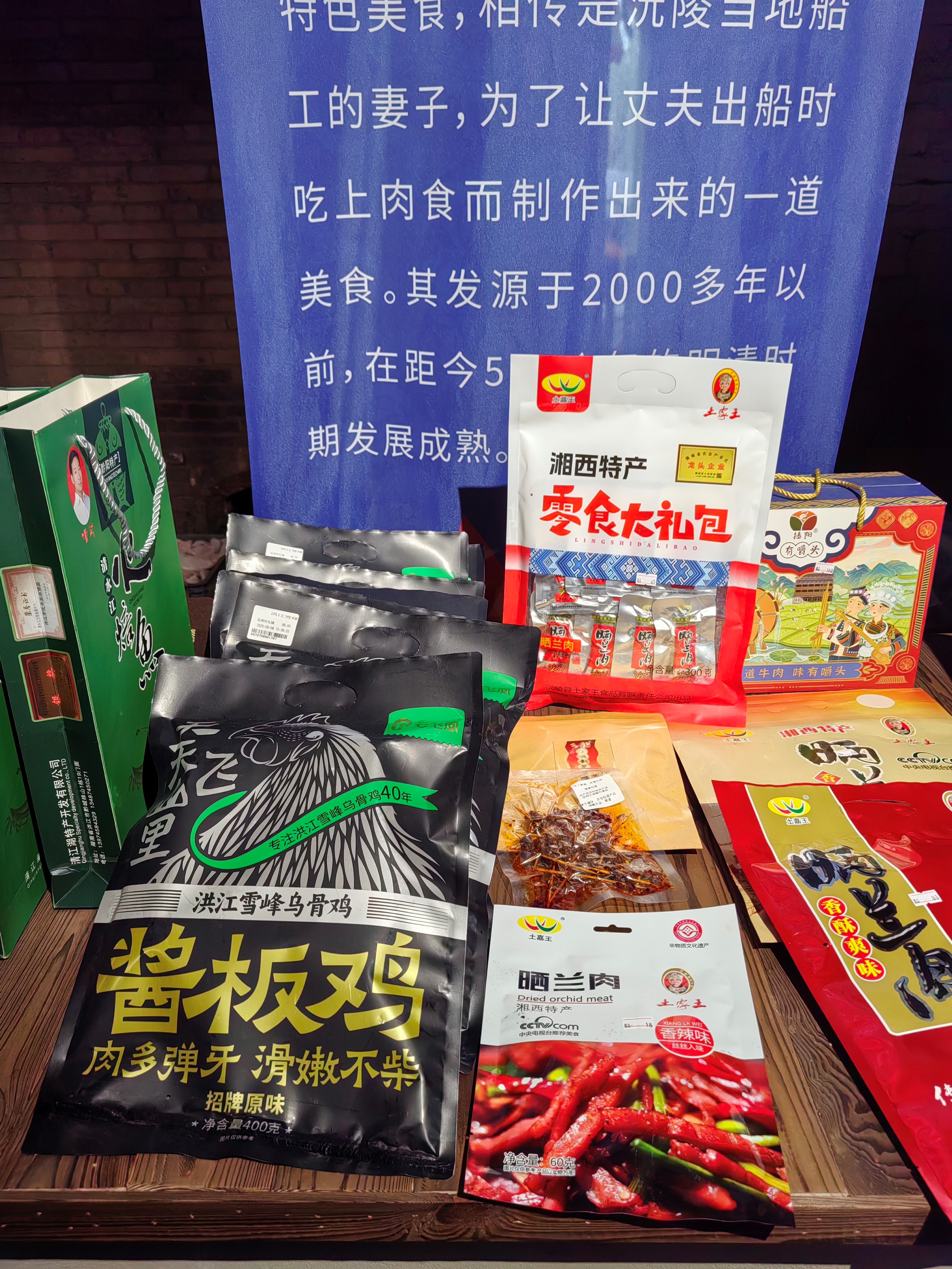 麻阳锦江泉的醇厚酒香、沅陵土家王晒兰肉的独特风味、沅陵酥糖的甜蜜滋味、麻阳红糖的质朴甘甜、芷江鸭的鲜香四溢、洪江雪峰乌骨鸡的营养美味、托口火焙鱼的酥脆可口……十余家会员企业带着各自的非遗产品齐聚于此。这些产品,承载着怀化市传统非遗食品制作技艺的深厚底蕴与文化传承的累累硕果。从老字号糕点的精致细腻,到传统酱料的浓郁醇厚,再到地方特色小吃的风味独特,每一类都彰显着传统美食文化与现代消费市场的完美融合。